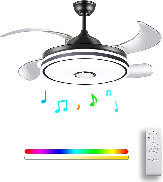 Retractable ceiling fan with bluetooth speaker and light led bluetooth ceiling fan chandelier speaker with and remote control 7 color lighting 42 inch rose gold 43 out of 5 stars 15 22999 229. Retractable ceiling fan with light and bluetooth speaker rgb color changing 36w 492in black ceiling fan with remote control horevo. Fast and free shipping free returns cash on delivery available on eligible purchase.
