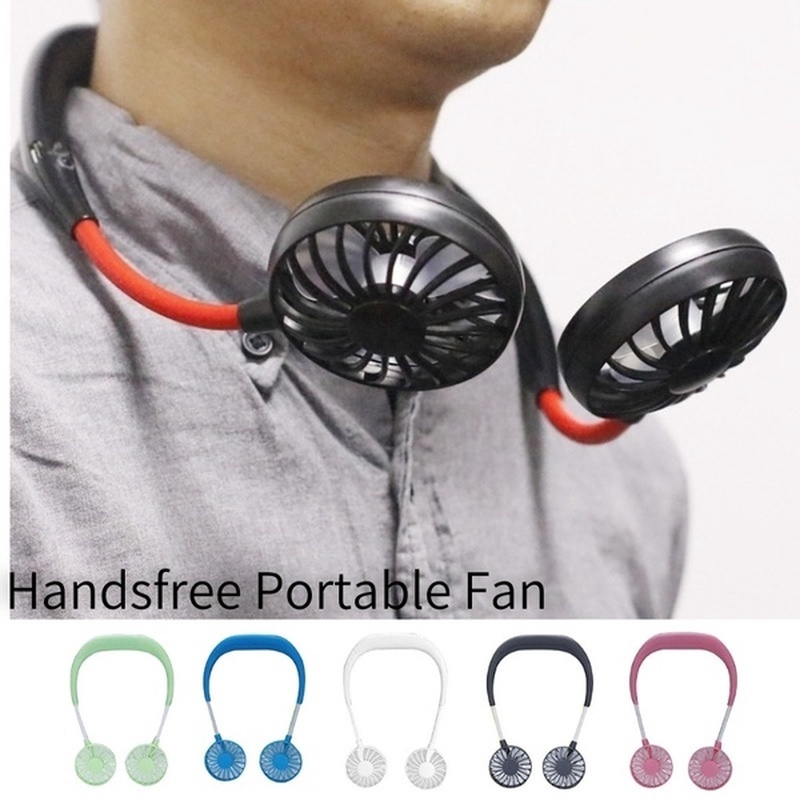 Designed with a band structure that you can easily wear around your neck and. Portable personal fan handsfree mini usb neck fan rechargeable wearable neckband fan desk fan necklance fan with dual wind head 3 speeds led light for traveling sport outdoor camping office blue 46 out of 5 stars 4028. Enjoy free express shipping on orders over 39.