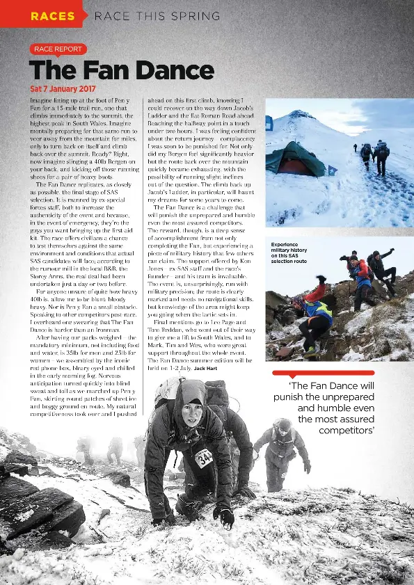 The fan dance is a gruelling 24km sas selection test march staged over pen y fan the highest mountain in the brecon beacons. The fan dance race organised by avalanche events is a recreation of one of the challenges used in the selection process of the uks special forces personnel. The fan dance forms part of uk special forces sas sbs selection.